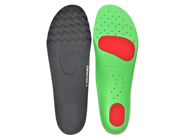 The Victor VT-XD11H insoles are specially designed for badminton players seeking enhanced arch support, shock absorption, and court stability. Built with ENERGYMAX V, high-elastic PU, and reinforced nylon materials, these high-arch insoles help distribute pressure evenly across the foot, reducing fatigue and improving comfort during intense play. The high arch design is ideal for players with elevated foot arches or those needing extra midfoot support during rapid directional changes.