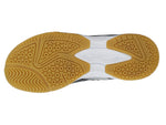 Coping with the asterisk steps, the center is the rounded-shape design surrounded by triangular shapes. The radiation pattern provides more grip on the court during lateral and vertical movements. The small lump pattern distribution adds additional grip as the sensor and increases the grip.